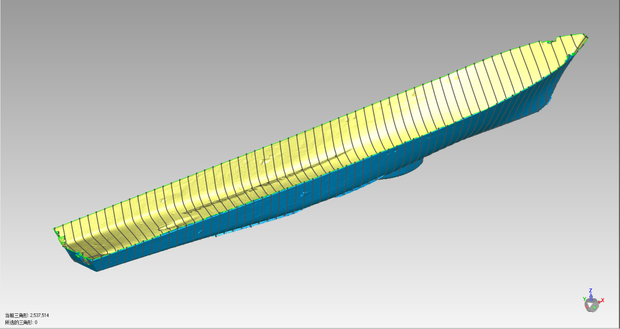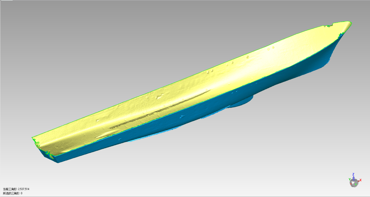 某船厂委托船舶设计单位,对位于印尼的一艘旧船进行扫描,获取船体龙骨线,与设计图对比后,确定船体受损位置。